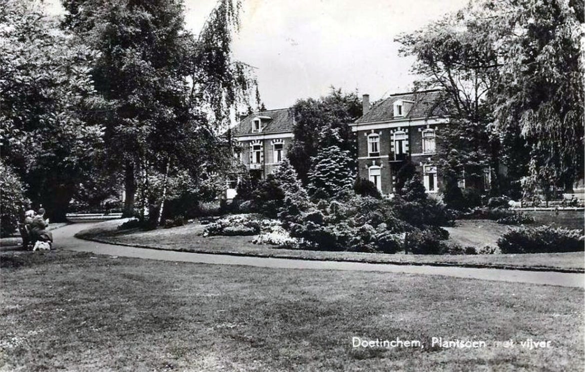 Links villa `Viletta`, het laatst bewoond door Dr. Blokhuis. 150 jaar geleden was de huidige straat de buitengracht.