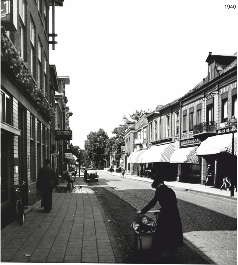 De Grutstraat. Links garage Borghuis dat in de oorlog zwaar zou worden getroffen.