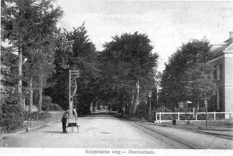 20: Prachtige foto van de Keppelseweg uit de jaren '20 t.h.v. het GTW station gezien vanuit Langerak.