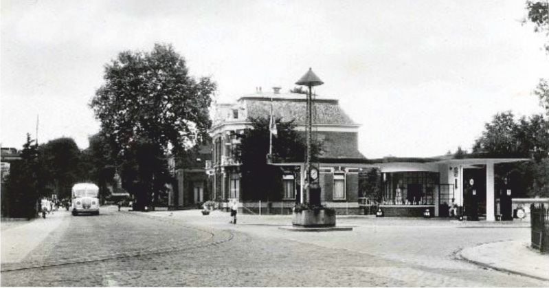10: Het eerste pand op de foto: het woonhuis van de heer Sebbelee, directeur van de GTM (GTW) in de periode 1915-1939. De woning is in 1938 afgebroken t.b.v. het Esso-tankstation van Hendriksen (later Ambrosius).