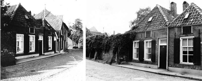 De huisjes aan de overzijde van de Synagoge, en foto rechts de huisjes naast de oude Synagoge.