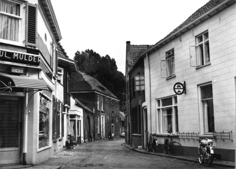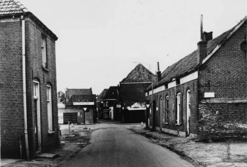 1960: Nieuwstad, met de houten bebouwing van Straalmans. Geheel links een stukje van het Gevang.