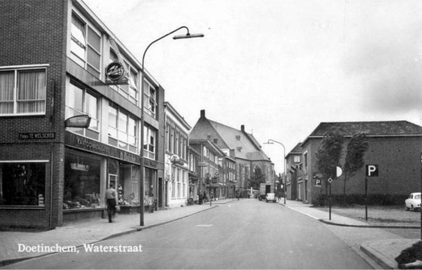 Mooie foto van de Waterstraat, de panden rechts werden in maart 1945 verwoest.